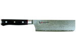 Nos couteaux de cuisine Zanmai Classic Pro sont conçus pour être performants. Son allure époustouflante et ses caractéristiques de qualité supérieure témoignent de ce que la coutellerie japonaise a de mieux à offrir. Fabriqué à Seki, au Japon, Mcusta associe la technologie moderne à l'artisanat japonais traditionnel pour produire des couteaux de qualité sur mesure finis à la main. Ce couteau mesure 12" de long et possède une lame damassée VG-10 avec un manche en bois de Pakka noir.