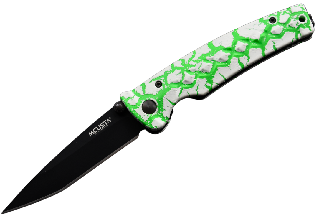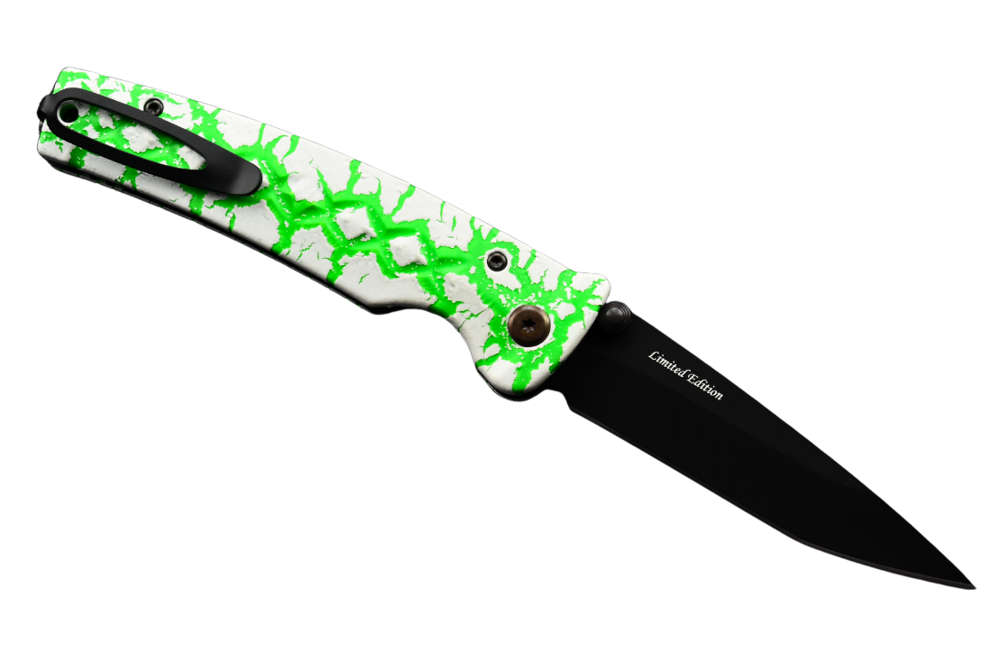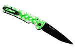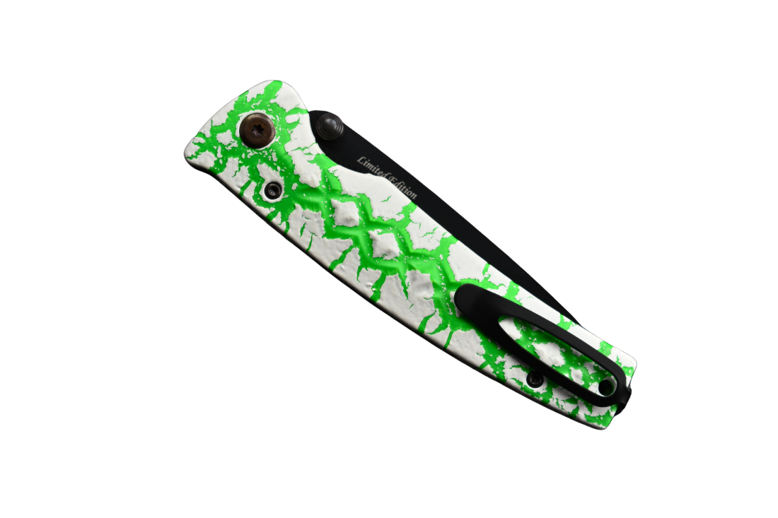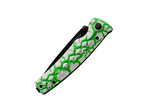 Dimensions Idéales: Mesurant 7.92cm de long fermé, ce couteau présente une lame VG-10 Core San Mai et un manche en aluminium anodisé vert et blanc pour une prise en main optimale.