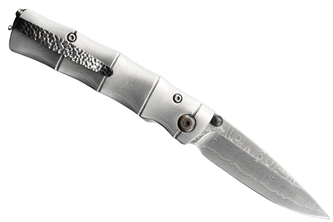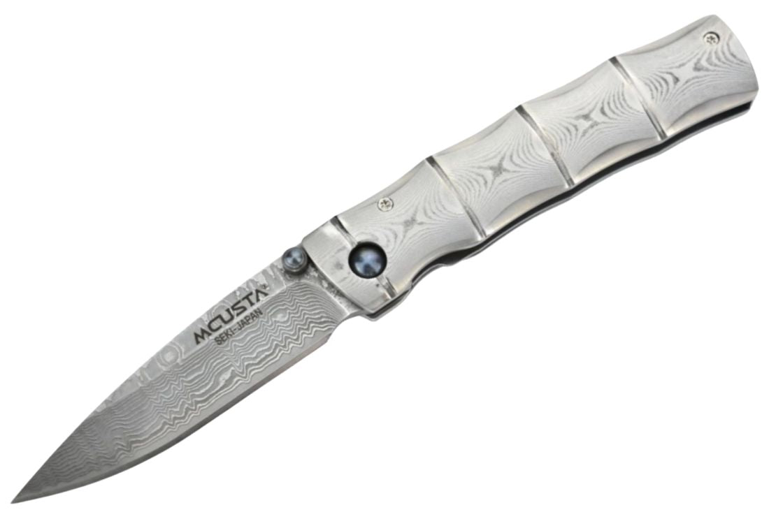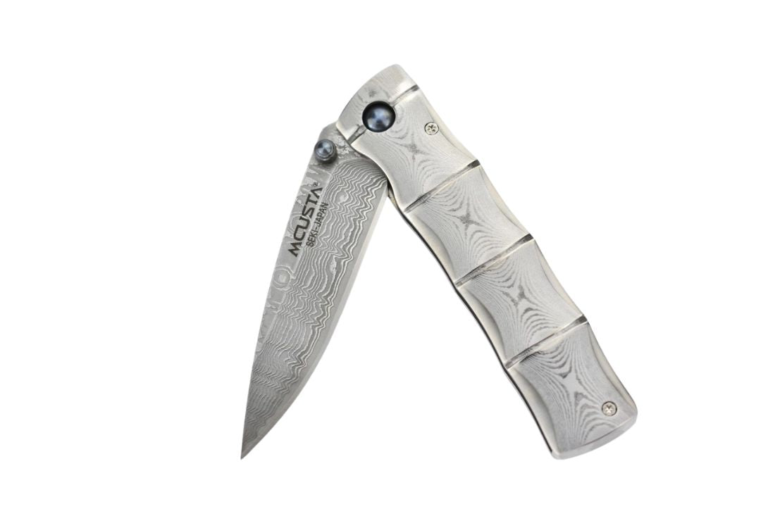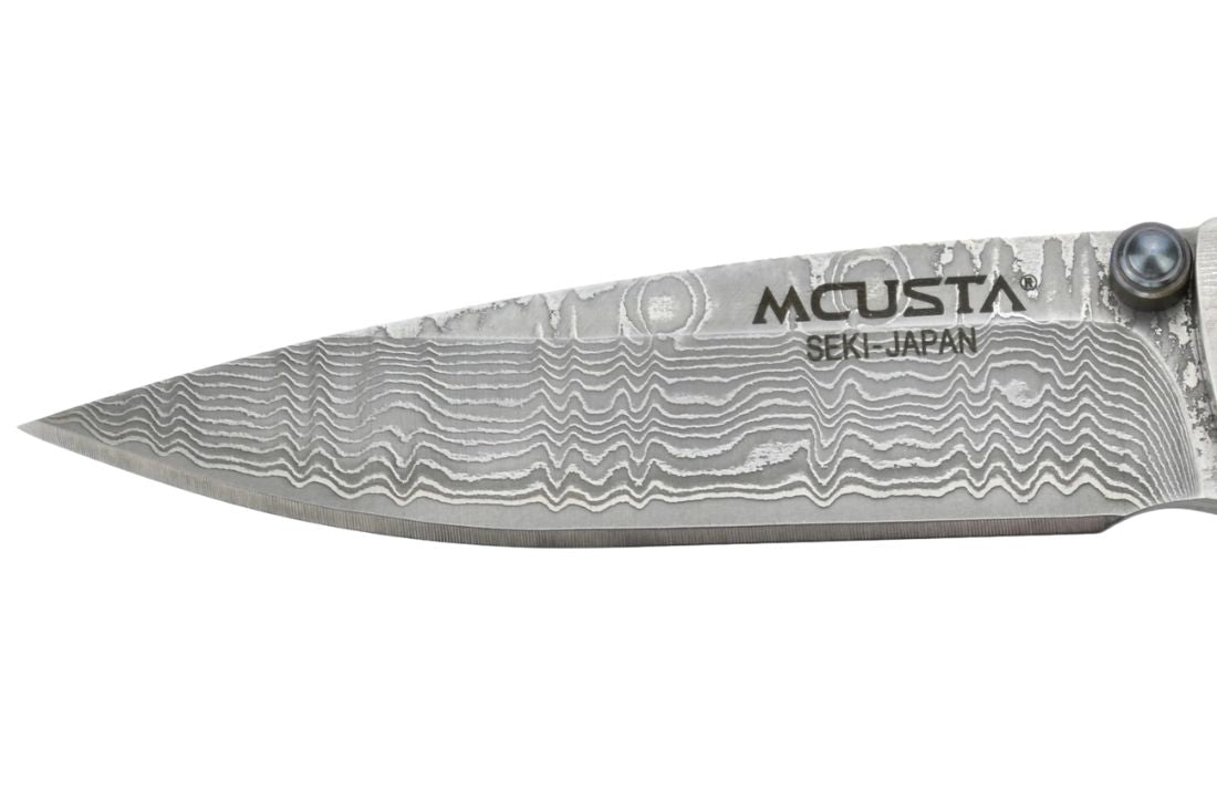 Le Couteau japonais pliant Mcusta MC33D série Take avec lame damas nickel 33 couches et noyau VG-10. Il est équipé d'un Manche en damas massif avec axe de pivot anodisé et système de rondelle en téflon. Thumb stud anodisé et intercalaires en acier inoxydable.