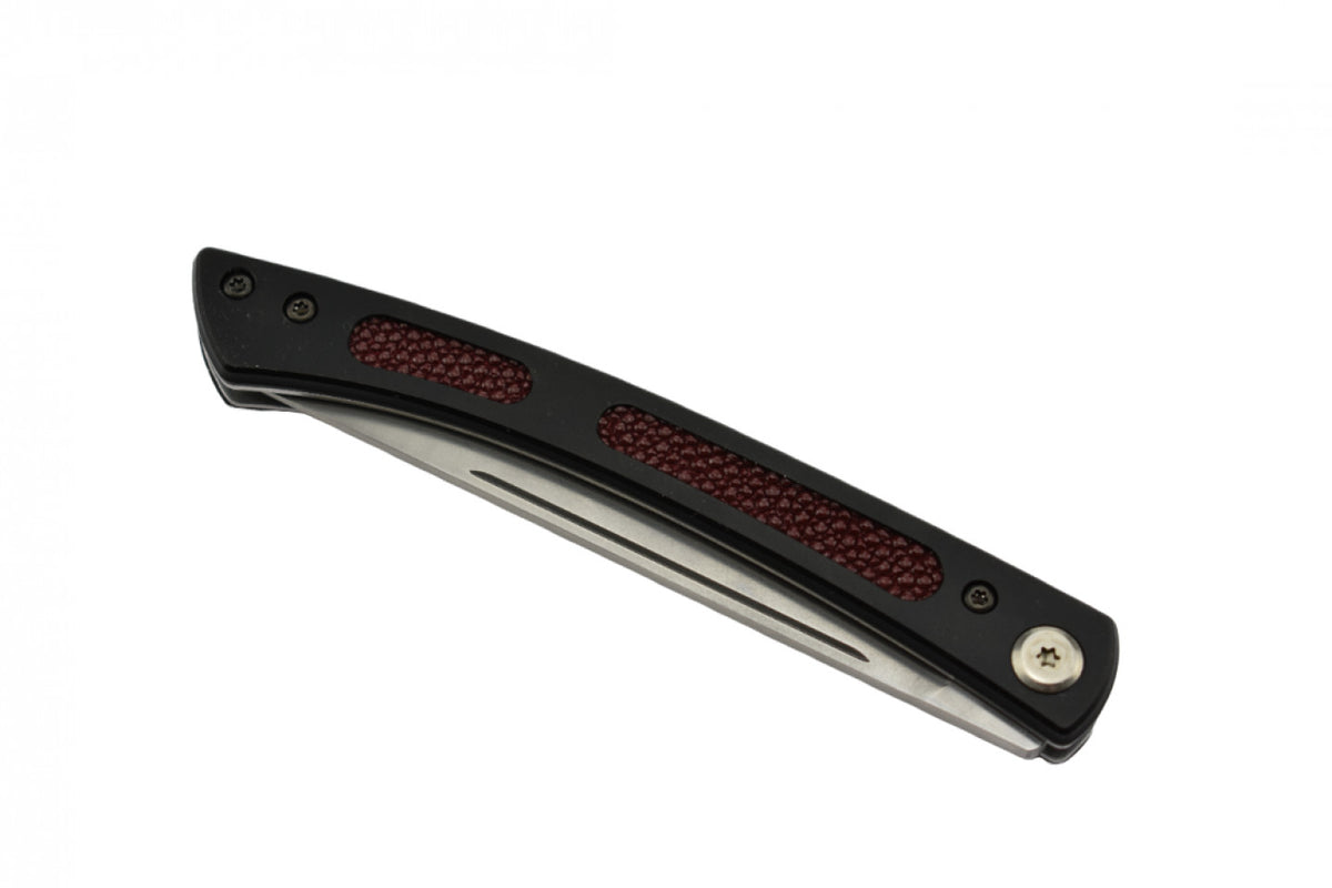 La perfection du MCUSTA MC221R repose dans sa lame exquise en acier inoxydable de 95mm, offrant une longueur totale de 210mm et une longueur fermée de 115mm. Un outil d'une qualité exceptionnelle qui allie précision, élégance et fonctionnalité.