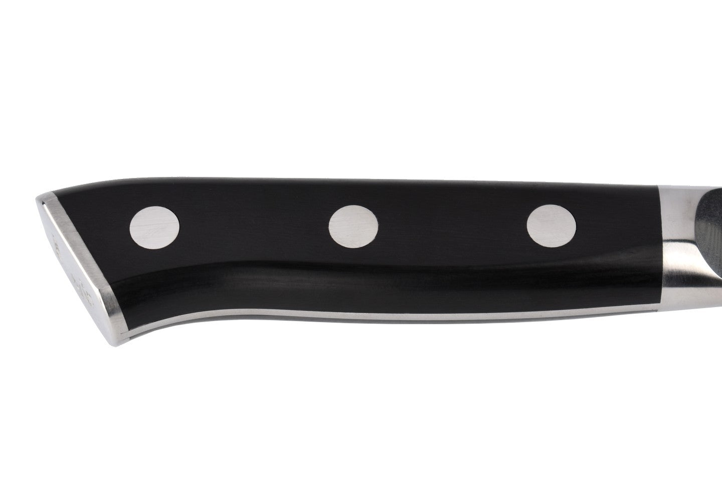 Manche en Pakkawood et acier inoxydable : Le manche en bois de Pakka noir associé à de l'acier inoxydable confère au couteau un équilibre parfait, une prise en main confortable et une esthétique élégante.