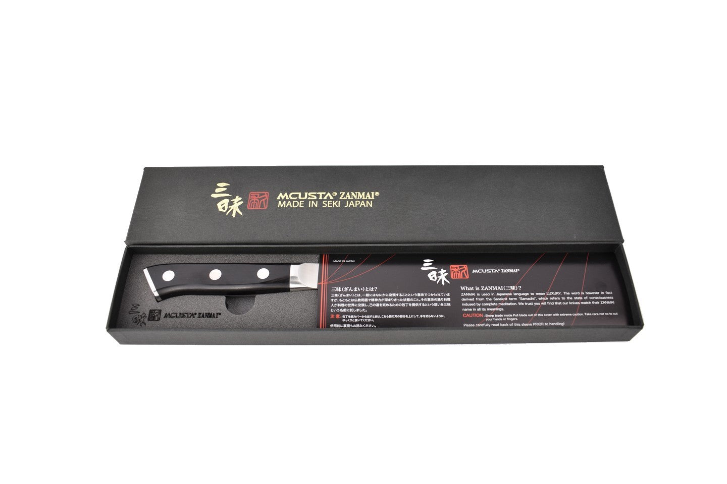 La lame est conçue en acier molybdène et vanadium 8A, pour lui apporter davantage de rigidité. Le manche est composé de bois de Pakka noir. Grâce à une technologie de surface très précise, la surface est traitée pour obtenir une finition avec délié. Il s'agit d'une structure parfaitement adaptée à la cuisine et idéale pour la coupe des aliments. Le manche est étudié pour faciliter l'utilisation du couteau, ses détails sont soignés, et il est poli jusqu'à obtention d'une finition miroir.
