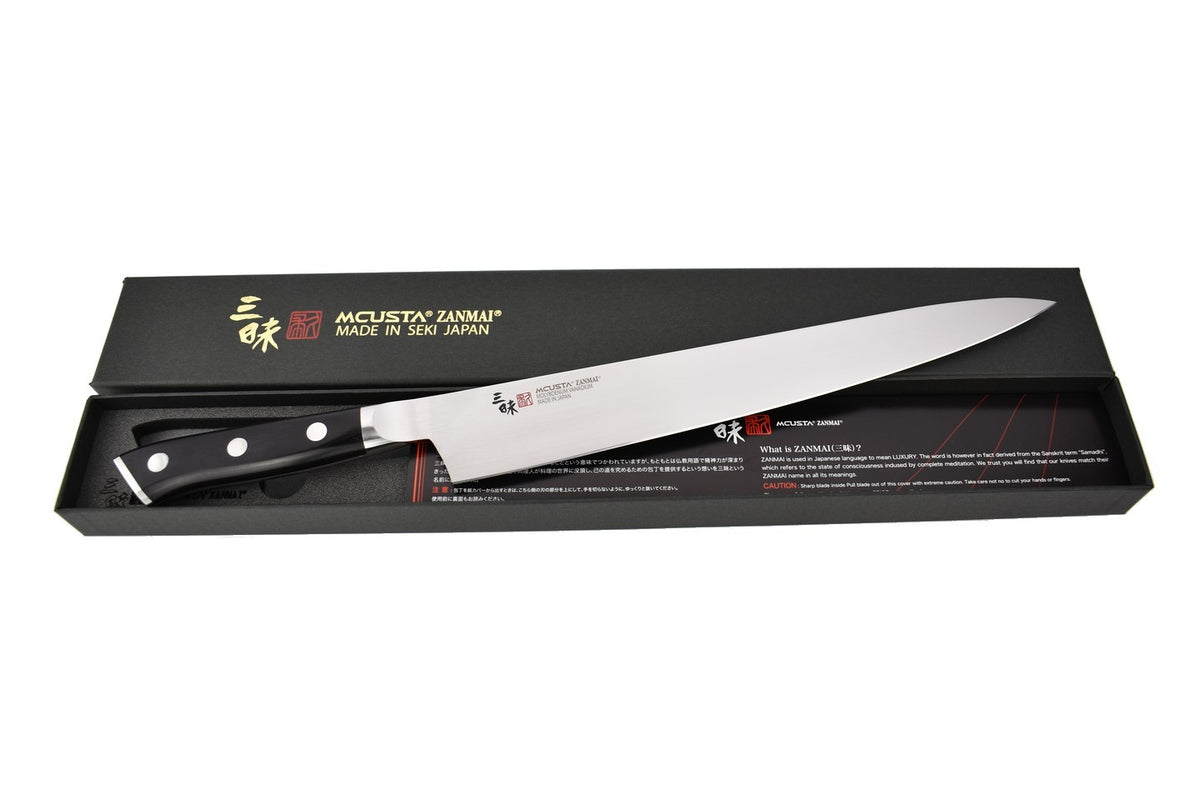 Parfait pour la cuisine grâce à sa structure adaptée et sa longueur de lame de 270mm