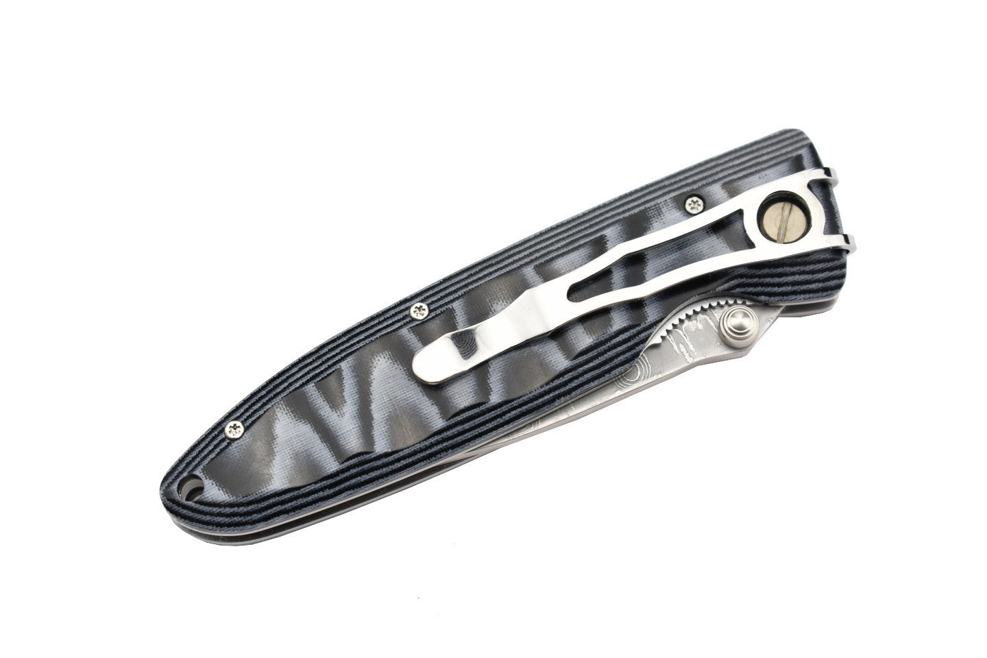 - Manche en micarta bleu.